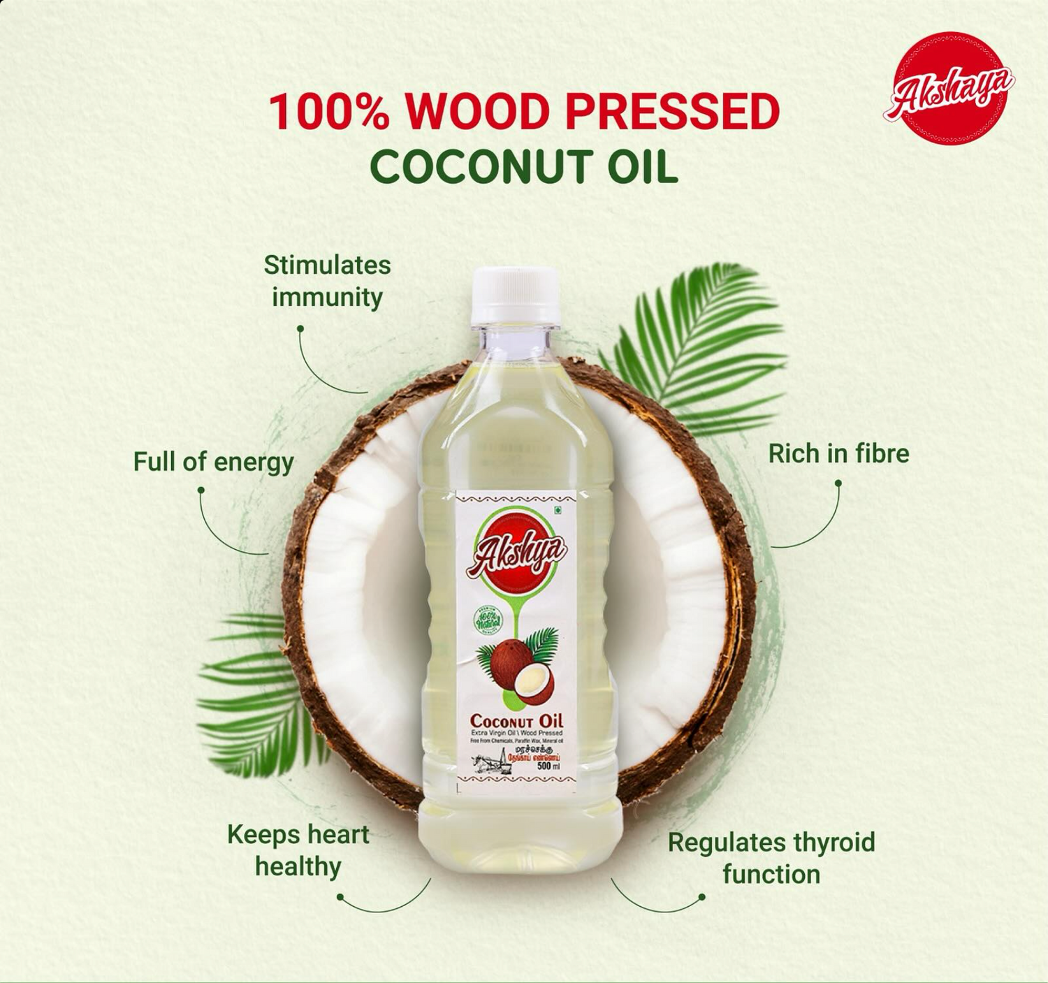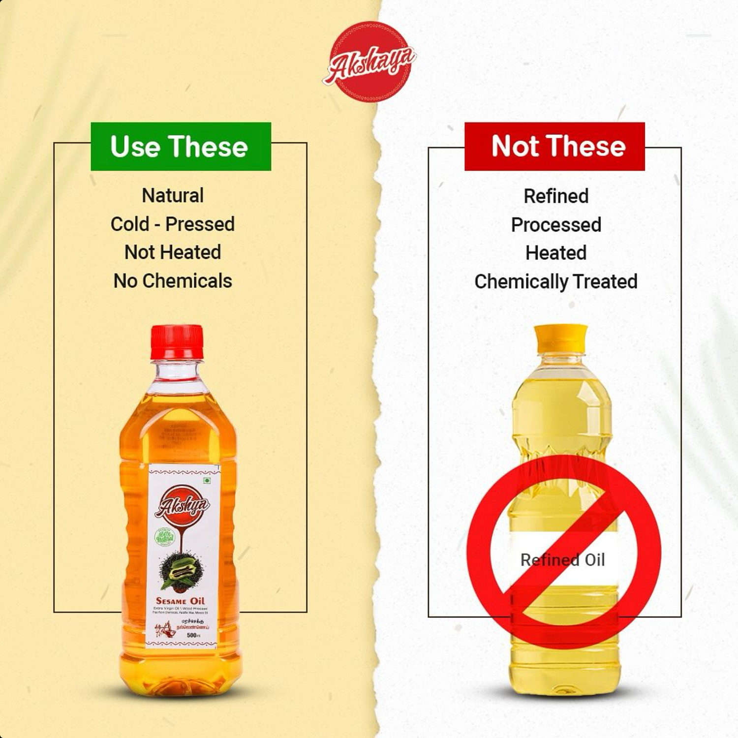 We have been purchasing cooking oils from Akshaya Organics for the past 10 years, and I completely trust their products for my family. Their oils are clean, hygienically made, and cold-pressed, ensuring they retain their full nutritional value. I have also used their almond oil for my baby for the past three years, and it has been wonderful. Highly recommend for anyone looking for pure, high-quality oils!